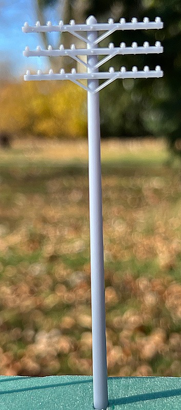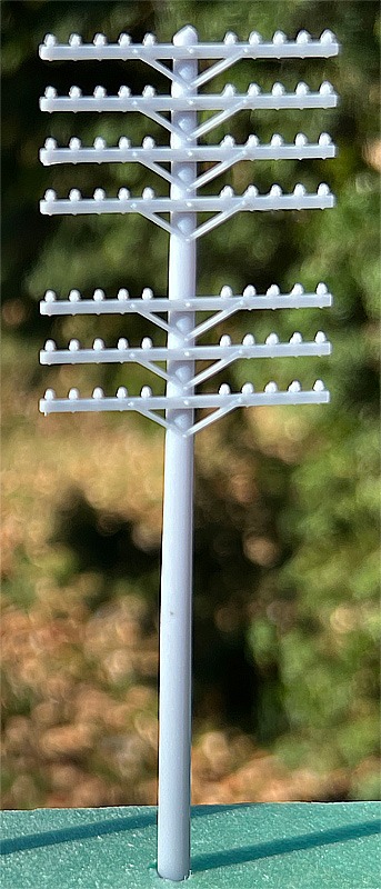 Two versions are available, three arm and seven arm. There is also an optional 15-foot pole extensions for those wanting to use taller ones for crossing the mainlines and such. No weeding needed, ready for a quick sanding and priming / painting.